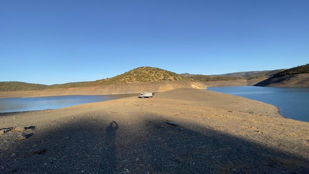 A circa 12 km , un piccolo lago artificiale ci sembra la sosta perfetta.