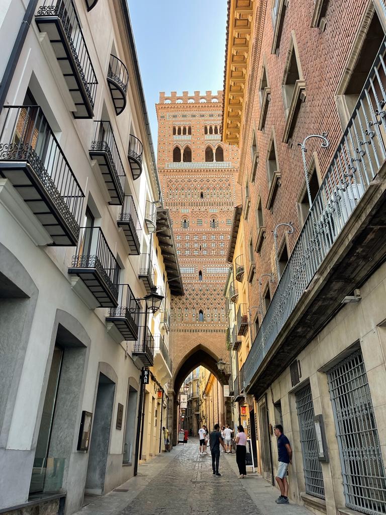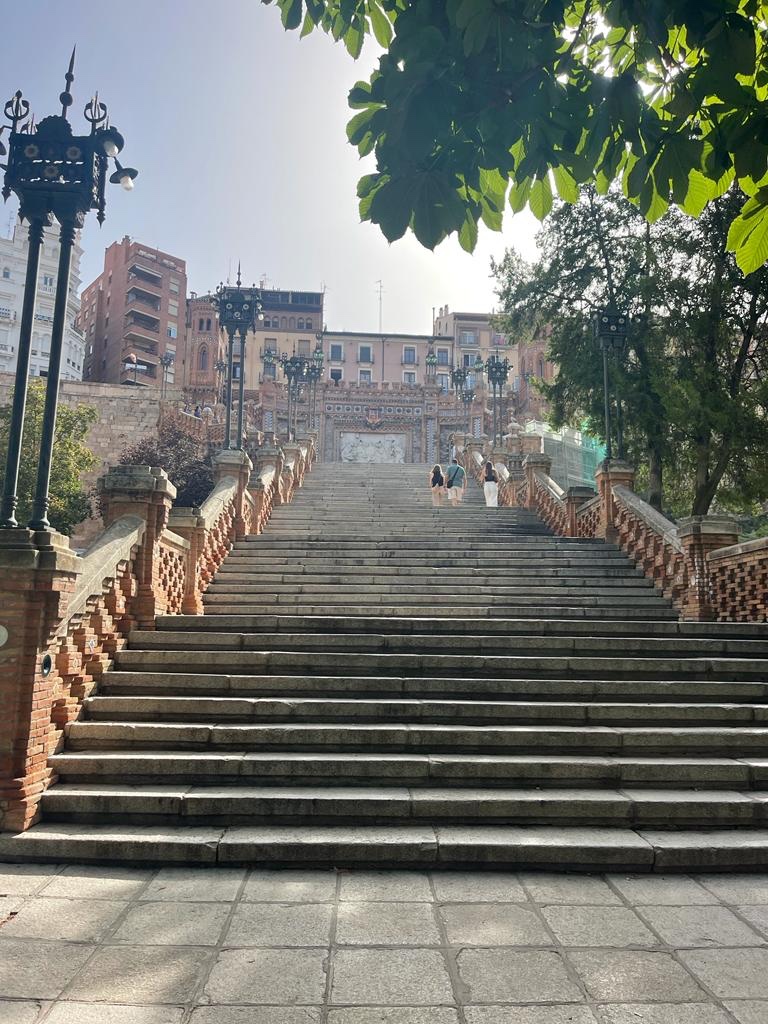 Fortunatamente, c’era una spazio sterrato in zona, dove abbiamo potuto lasciare HungryWheels e percorrere a piedi la bellissima scalinata in stile mudejar che ci ha fatto salire al nucleo storico.