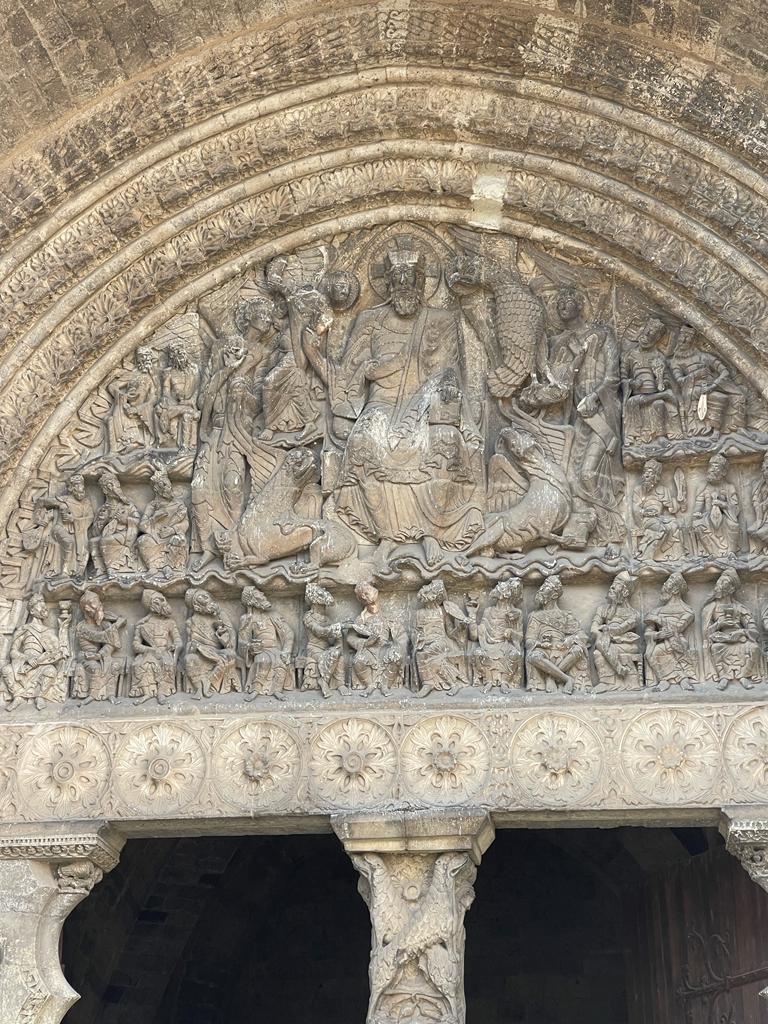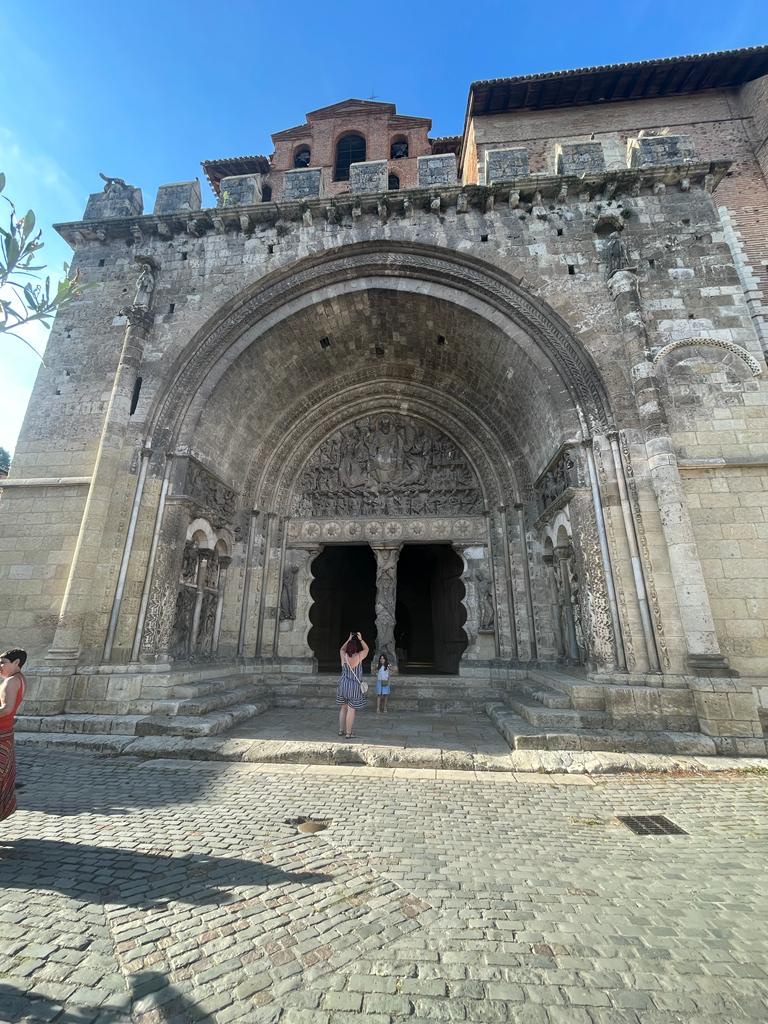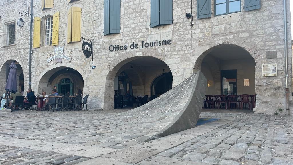 In questa cittadina arriviamo verso le 18,30 quando l’ufficio turistico ormai ha chiuso e non possiamo visitare il monastero. Ci limitiamo quindi a dare una occhiata alla cattedrale e al suo magnifico portale romanico. Sembra che le strade del centro storico siano accattivanti ma, non trovando parcheggio, rinunciamo alla visita e continuiamo verso la cittadina dì Lauzerte. Non abbiamo informazioni dalla guida su questa località ma, i cartelli stradale la indicano come sito medievale e, avendo tempo e voglia, avendo trovato un posto dove fermare Hungry Wheels, cominciamo a salire le strette strade del borgo raggiungendo terrazze dalle quali si godono magnifici panorami sulla vallata. Proseguiamo a salire fino a raggiungere la piazza del paese, contornata da case di roccia molto ben tenute.