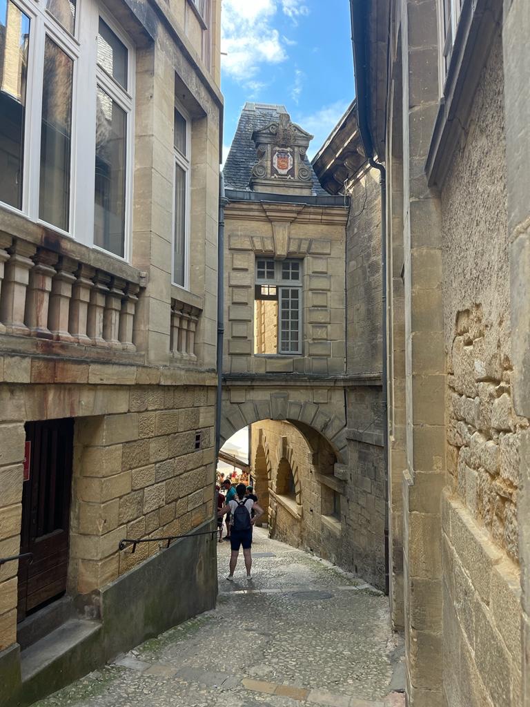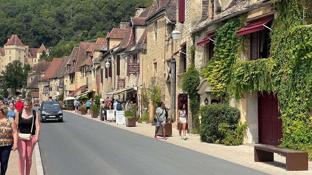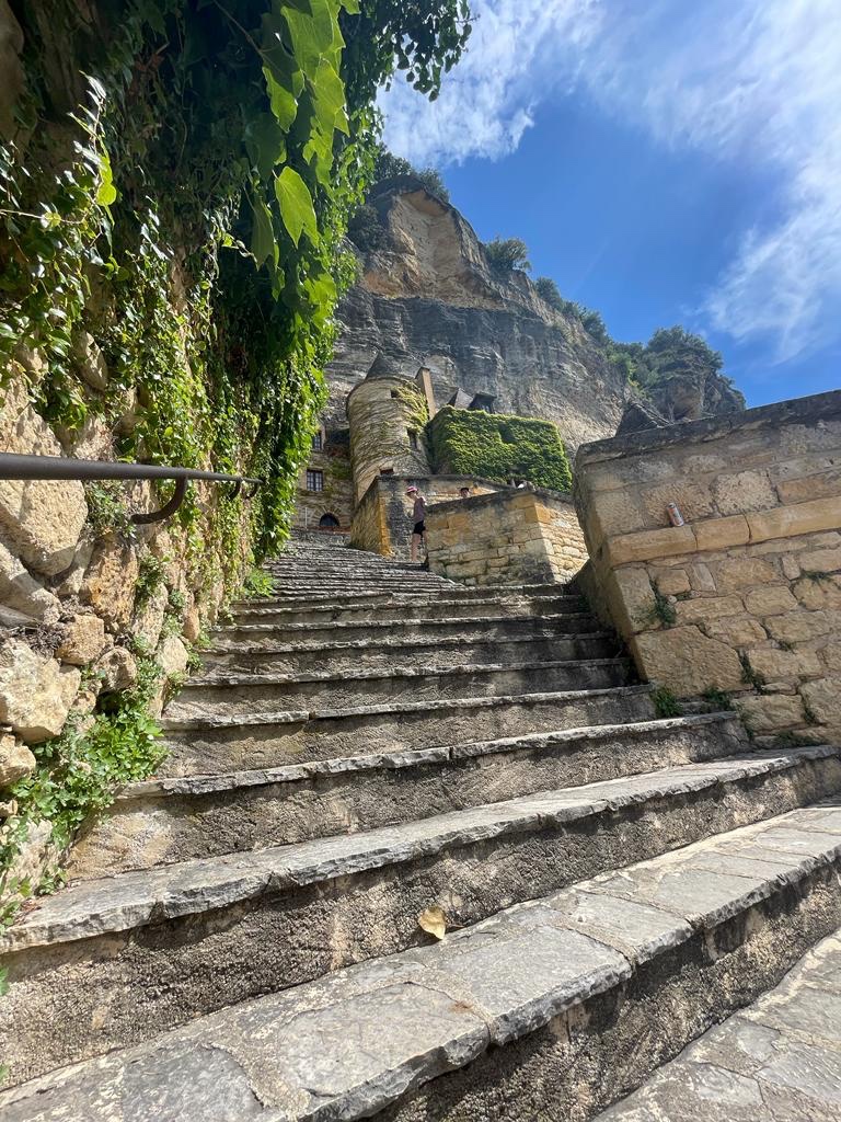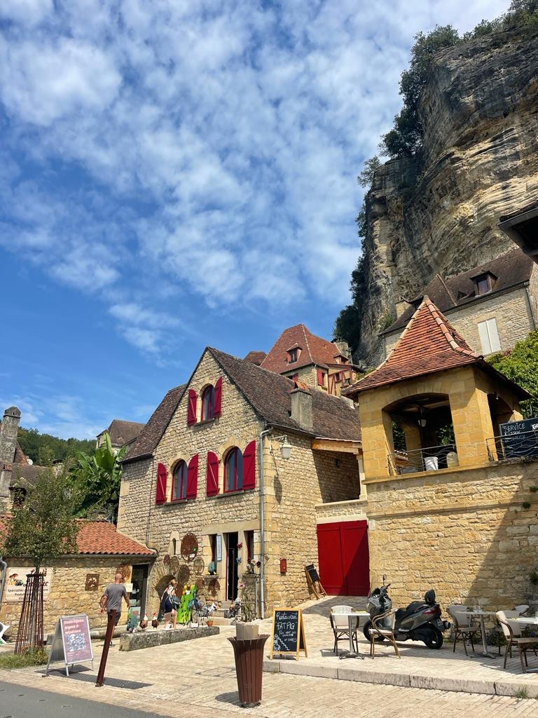 Ci fermiamo invece a visitare il piccolo borgo di la roque cageac con le sue meravigliose case a graticcio,quelle costruite addossate alla montagna, il mercato di prodotti tipici , dove non resistiamo a comperare un pezzo di torta al miele e noci e i siti preistorici nella roccia ; a seguire ci fermiamo anche per la visita della strepitosa cittadina di Sarlat la caneda.