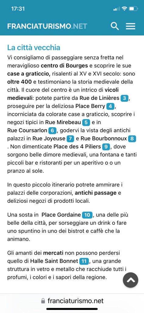 Una volta raggiunto il centro medievale di Bourges che dita circa 1,7 km dall’area sosta, ci aggiriamo lungo le strade scoprendo magnifici palazzi e case a graticcio, tipiche dell’epoca del tardo medioevo.