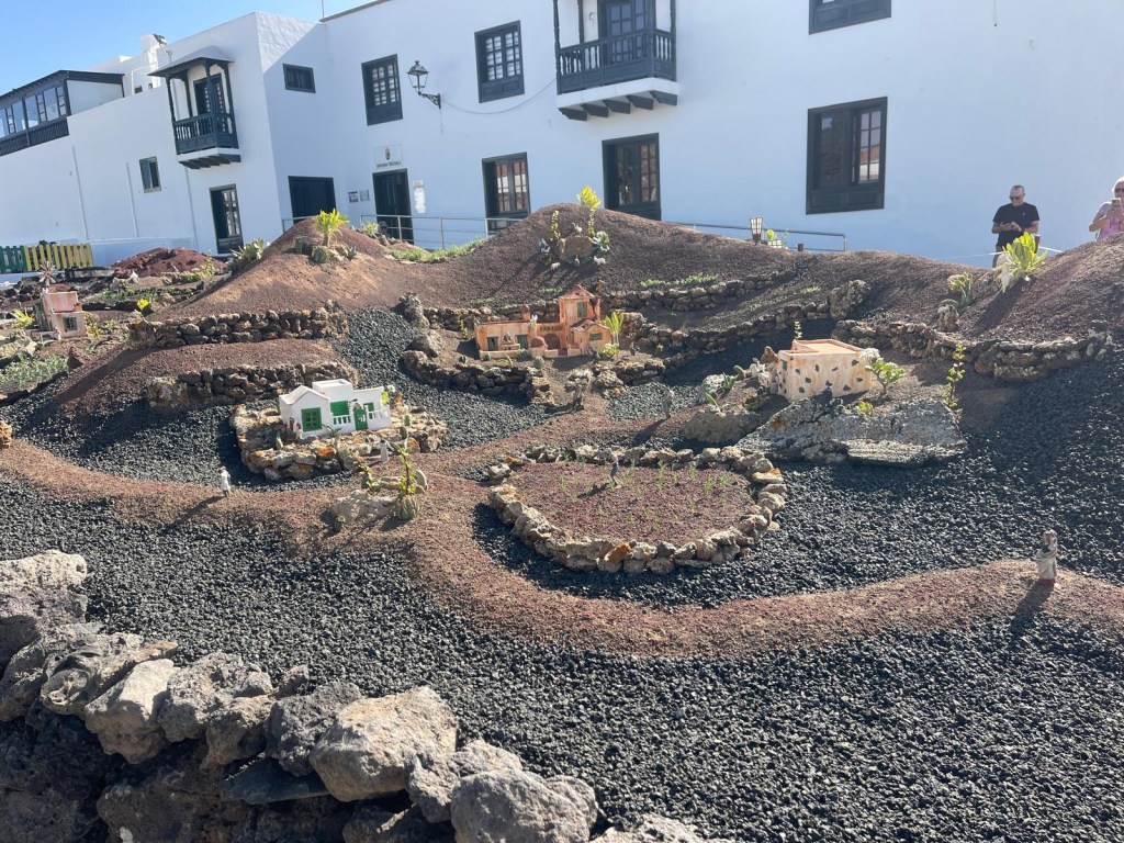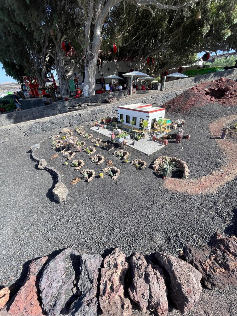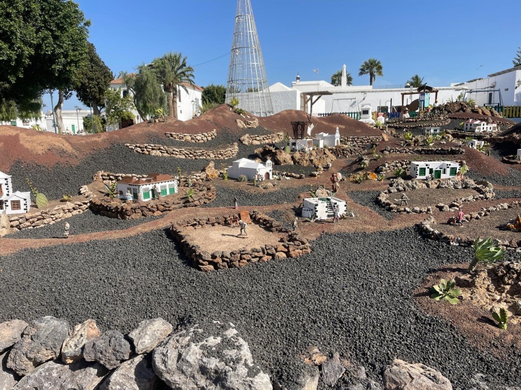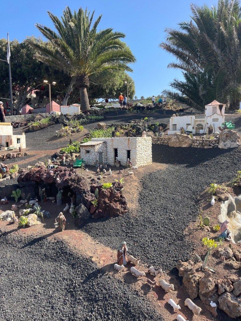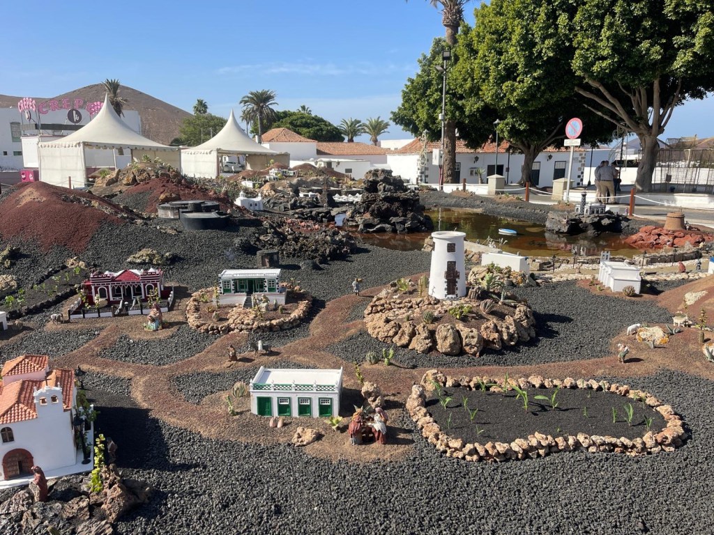 Quello più grande, presso la Geria, Stratvus, è incantevole! Molto ben realizzato, con piante e ricostruzioni di abitazioni presenti sul territorio, si sviluppa in un vasto giardino, su più livelli; le statuine rappresentano vari lavoranti come contadini, allevatori, donne che cuciono, pescatori… che sembrano tutti affaccendati in un territorio che rappresenta l’isola di Lanzarote con l’immancabile vulcano.