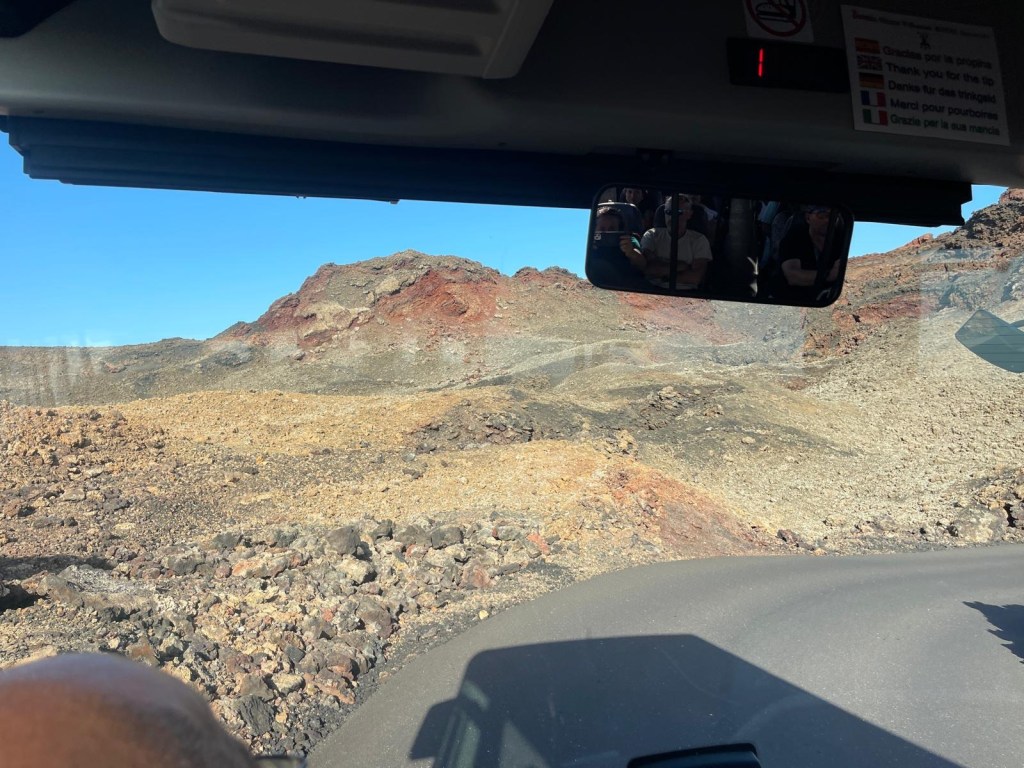 Da qui, con un autobus, abbiamo percorso le strade chiuse al pubblico che ci hanno condotto in mezzo alla lava vulcanica e alla bocca del vulcano mentre, spiegazioni registrate in spagnolo, inglese e tedesco, ci fornivano informazioni in merito alle eruzioni che hanno stravolto l’aspettò dell’isola, avvenute quasi trecento anni fa.
