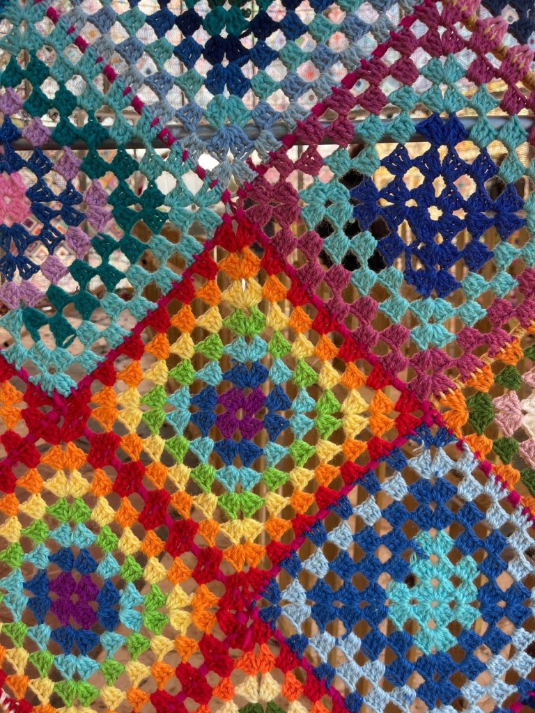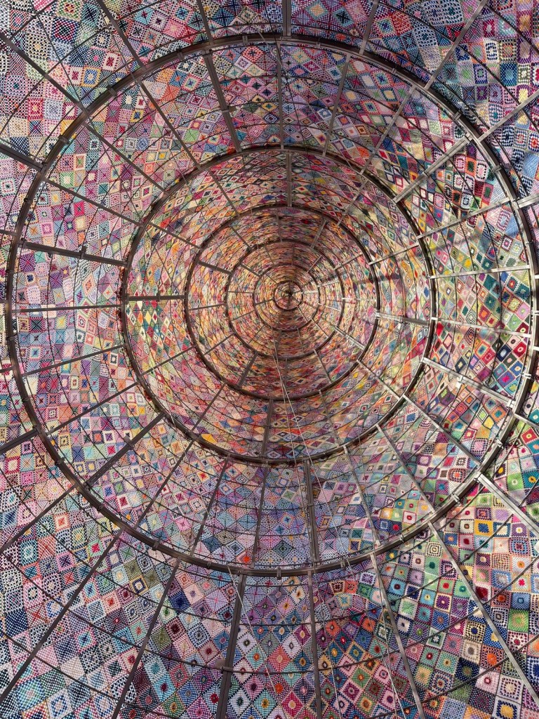 Nella piazza limitrofa, una struttura a forma di grande cono, alto una ventina di metri e totalmente ricoperto da una coperta di quadrati realizzati a maglia, funge da albero di Natale.