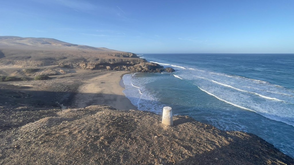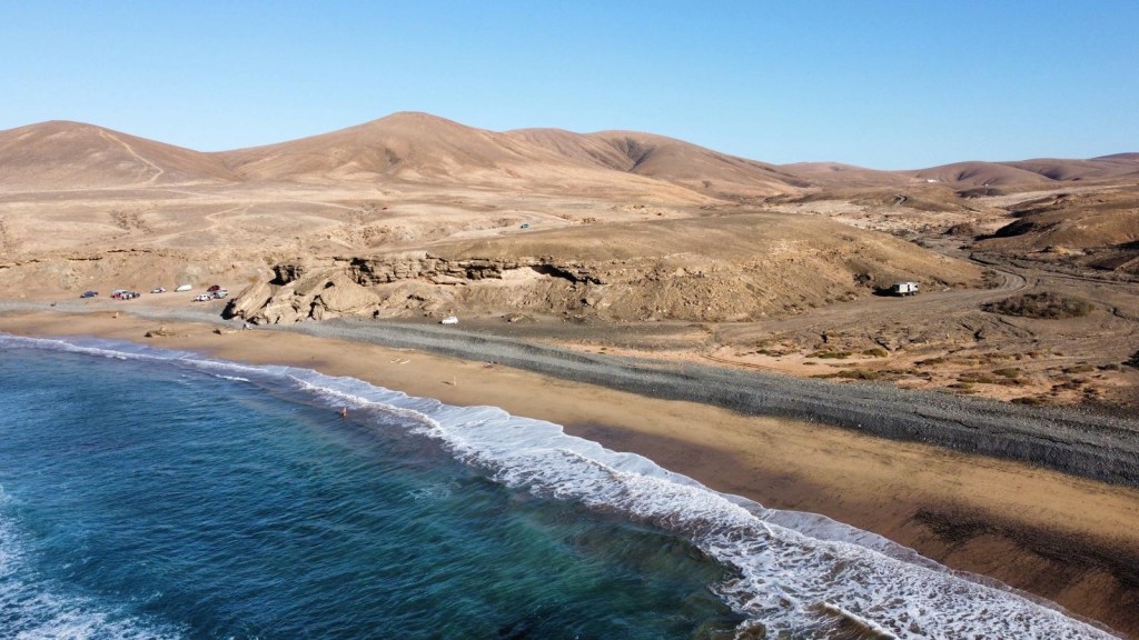 Prima di recarci verso il centro urbano, abbiamo provato a trovare un luogo di sosta per la notte presso un paio di spiaggette poco più a nord, ma erano già occupate da altri campeggiatori. Abbiamo pertanto raggiunto la spiaggia della Pared e ci siamo fermati sul promontorio, dopo aver superato tutte le auto dei surfisti che stavano caricando le loro attrezzature per tornare a casa. Il posto è bello ma troppo affollato per i nostri gusti.