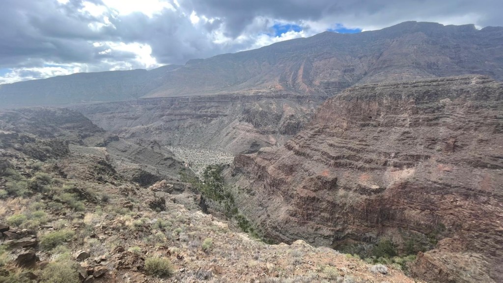 Le montagne sono di roccia vulcanica di color brunito con la presenza di notevole e variegata vegetazione, perlopiu arbusti e palmeti sparsi nel barranco.