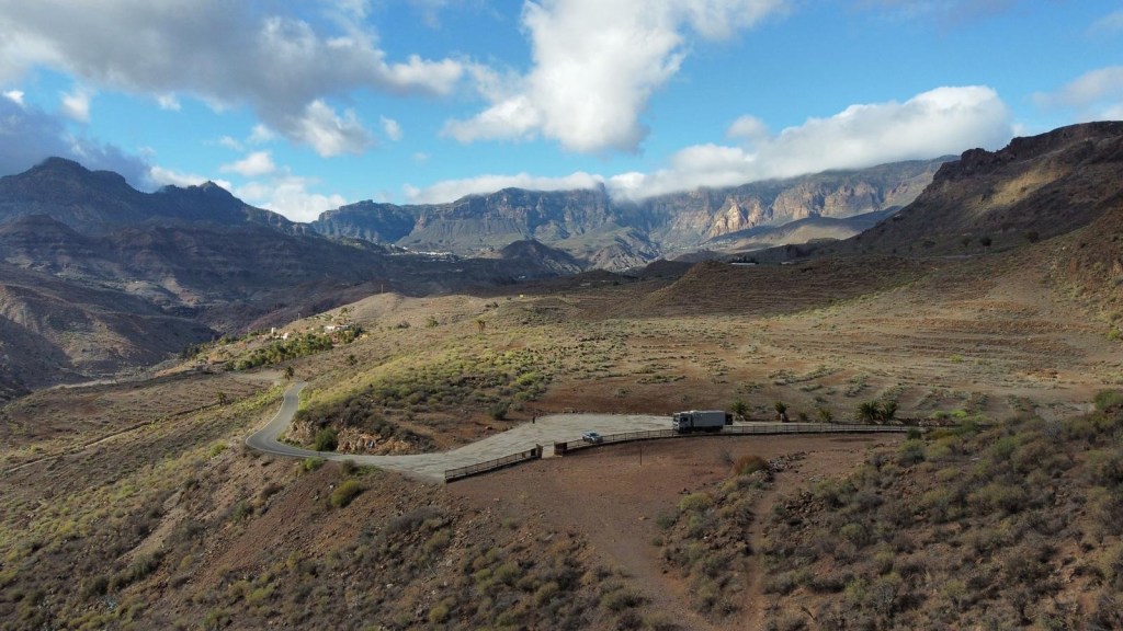 Riusciamo a fermarci presso un primo mirador ed approfittiamo per fare un volo con il drone.
