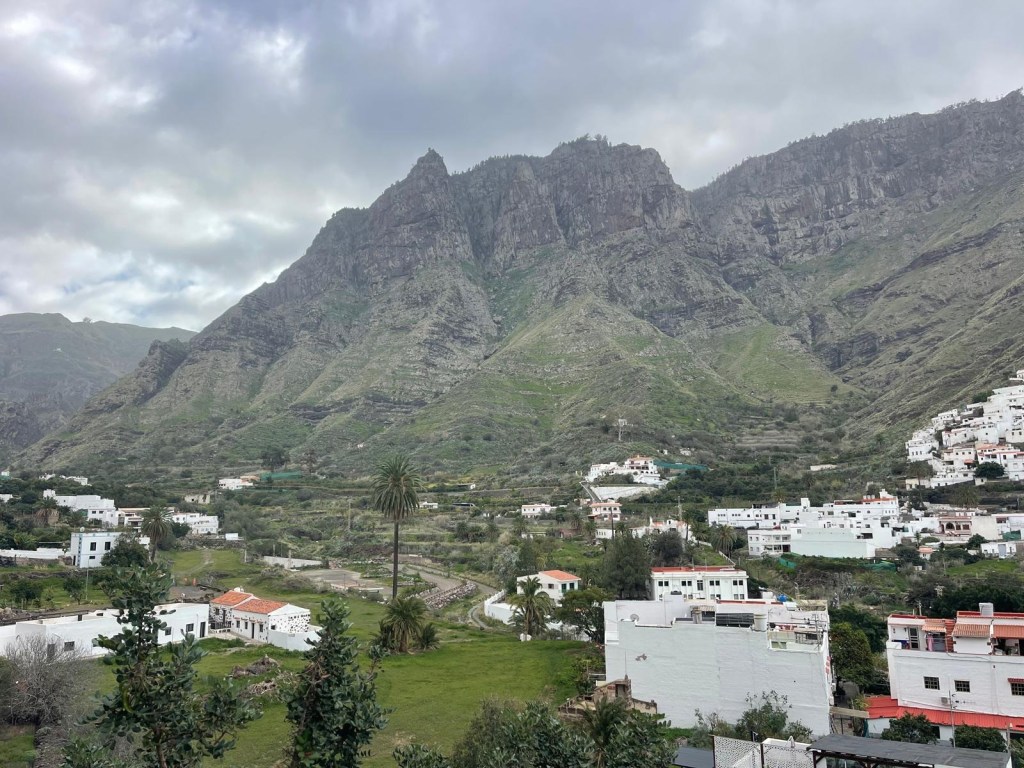 Il clima è umido e le montagne circostanti sono completamente verdi. Il paesaggio, ci ricorda più il Guatemala che le Canarie.