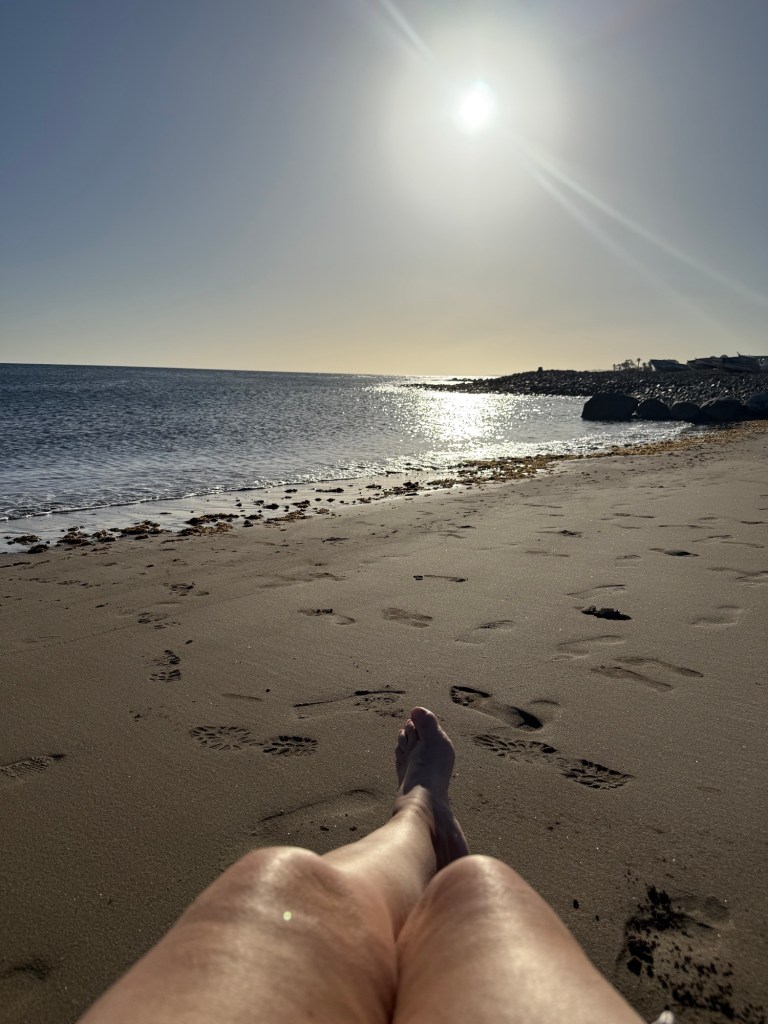 Approfitto di mettermi il costume da bagno e, con la sdraio, di mettermi al sole, anche se sono le cinque e l’aria si sta rinfrescando.
