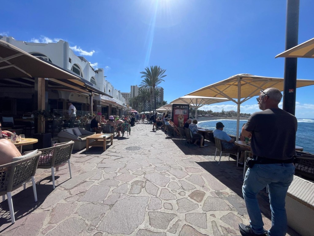 Entrambe sono spiagge attrezzate e vivaci, protette dalle onde oceaniche, quindi perfette per un bagno tranquillo. Nonostante fosse lunedì, c’era molta gente sul lungomare: per lo più turisti in pensione, ma anche giovani intenti a rilassarsi nei bar affacciati sull’oceano.