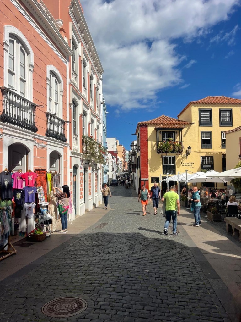 Ci dirigiamo poi verso Calle Pérez de Brito, un vero spettacolo: gli edifici storici del 1800 in stile canario si affiancano a negozi di abbigliamento, souvenir e caffetterie accoglienti.