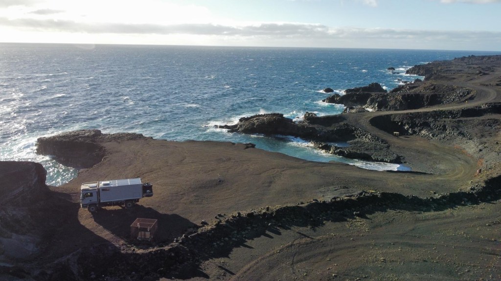 Conclusione della giornata: una delle soste più belle del viaggio, tra paesaggi spettacolari, mare e un’incredibile sensazione di solitudine rigenerante.