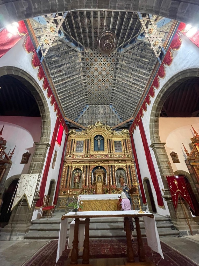 Riprendiamo il viaggio e raggiungiamo il pittoresco villaggio di San Andrés, uno dei più antichi dell’isola. Parcheggiamo davanti alla Chiesa di San Andrés, costruita nel 1515 dagli spagnoli, sebbene l’edificio attuale risalga al XVII secolo. L’interno è un capolavoro di arte sacra, con pale d’altare barocche e un soffitto a cassettoni in legno che lascia senza fiato.