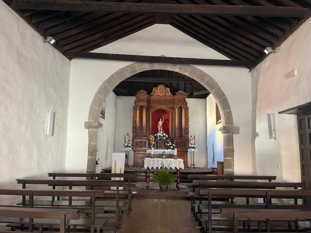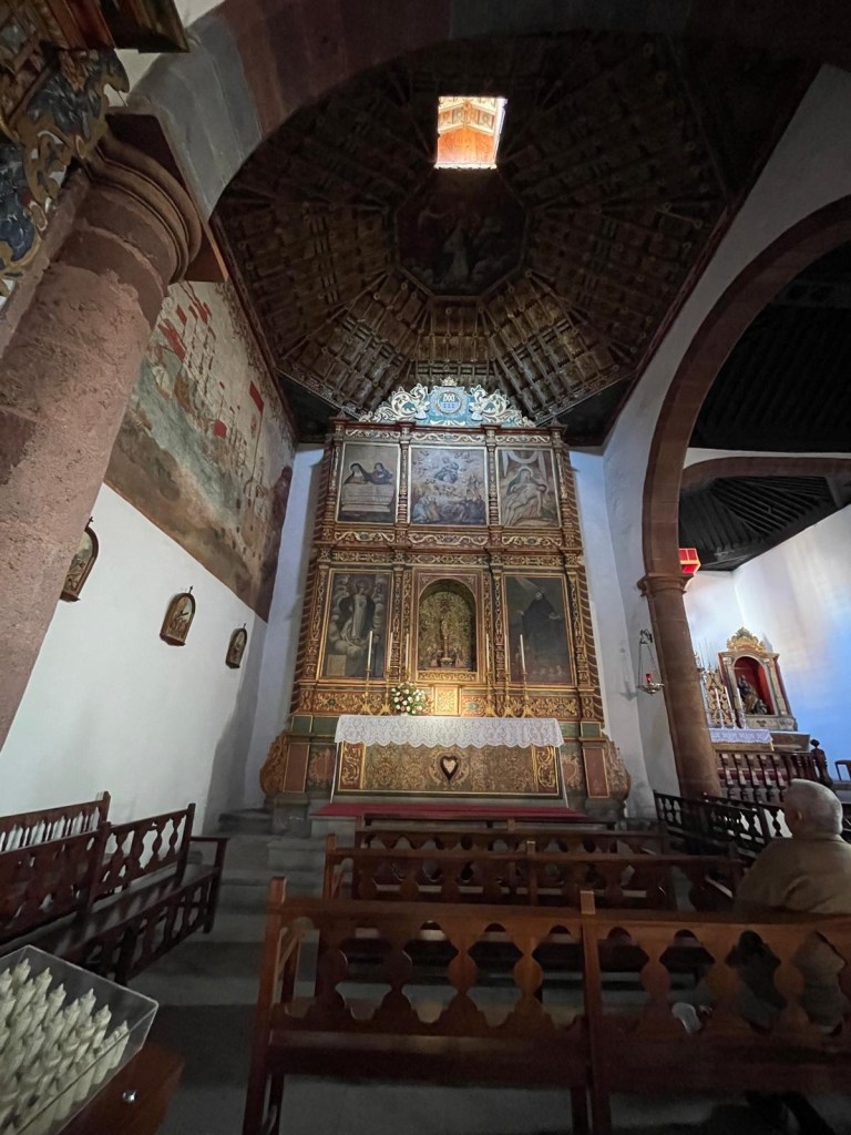 La cappella originale, iniziata nel 1450, fu purtroppo distrutta da un incendio. Tuttavia, l’arco a sesto acuto, situato tra l’altare e la navata principale, è sopravvissuto ed è un prezioso esempio dell’architettura gotica. La facciata, influenzata dallo stile manuelita portoghese, rappresenta una rara testimonianza del gotico Atlantico. La chiesa attuale, costruita nel XVIII secolo, presenta tre navate e uno stile eclettico che unisce elementi mudejar, gotici e barocchi, con un ingresso in legno finemente scolpito.