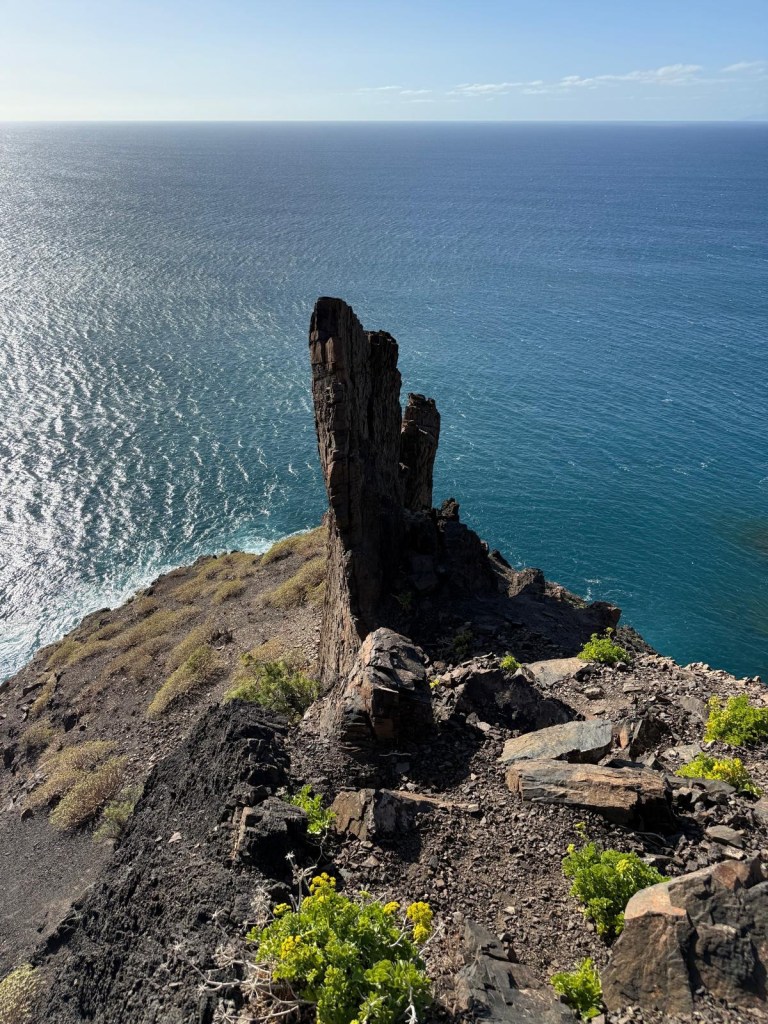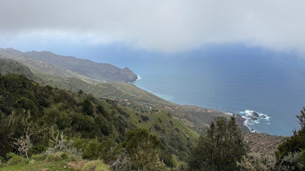 La nostra esplorazione continua fino al minuscolo paese di Arguamul, una manciata di case abbarbicate sulla montagna, immerse in un silenzio surreale. Da qui, imbocchiamo una strada tortuosa con innumerevoli tornanti, attraversando Guillama. Dopo aver percorso un breve sentiero tra le abitazioni, arriviamo in un punto panoramico che si affaccia su una spiaggia remota. Ci soffermiamo a contemplare la vista e a chiederci chi mai abbia deciso di costruire una casa in un luogo così isolato.
