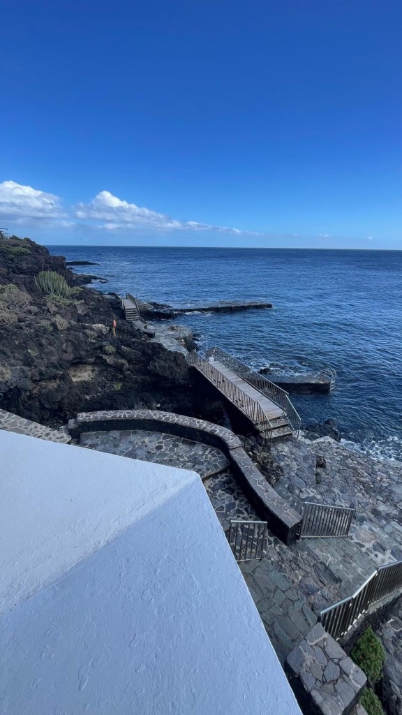 A poca distanza, abbiamo raggiunto Tamaduste, un altro angolo incantevole dell’isola. Il villaggio si affaccia su una baia riparata, dove l’oceano si insinua tra le rocce laviche creando un paesaggio quasi surreale. Qui una lunga passerella in legno, punteggiata di ombrelloni, invita a passeggiate rilassanti con vista sull’oceano.