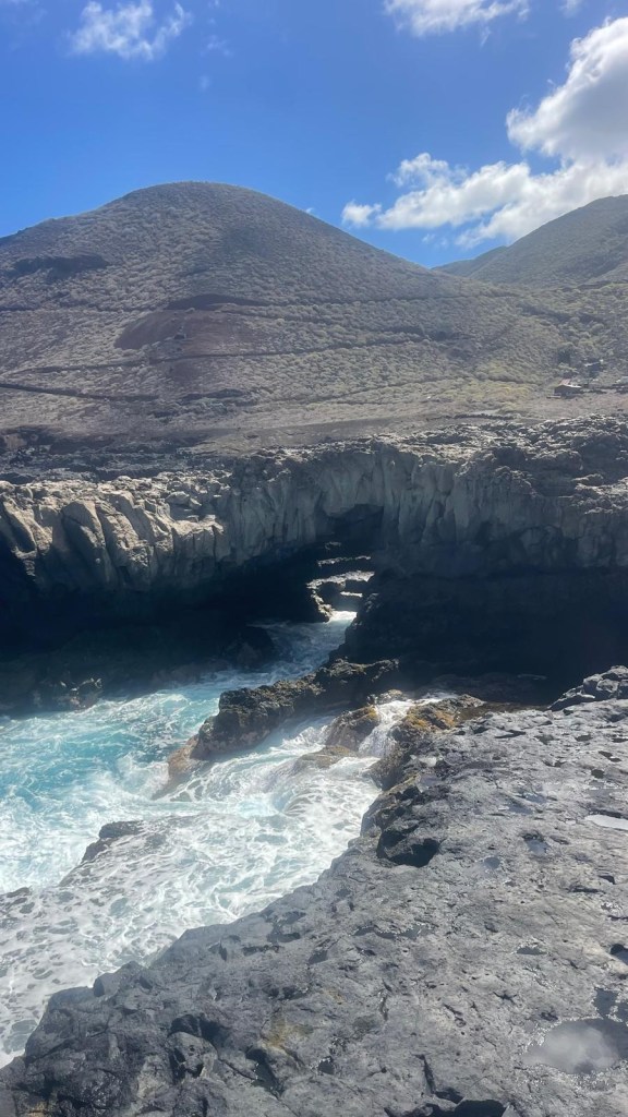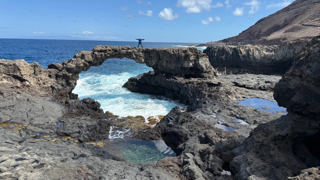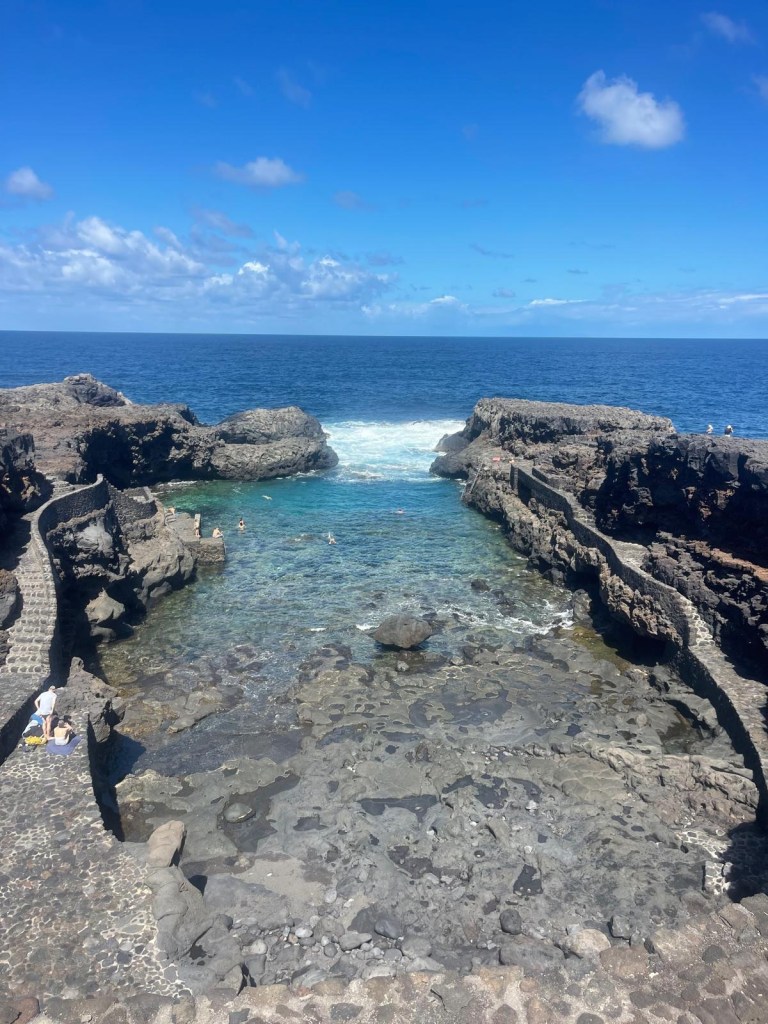 Questo luogo incantevole è caratterizzato da piscine naturali d’acqua di mare, circondate da spettacolari archi di lava. L’acqua turchese è invitante, ma le correnti possono essere pericolose, specialmente con l’alta marea. Ci fermiamo a scattare foto e a pranzare in un chiosco, mentre alcuni turisti più temerari si tuffano nell’oceano.