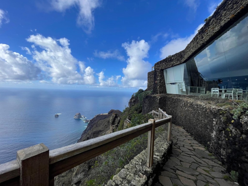Dall’alto possiamo ammirare la valle di El Golfo, la costa e il Roque de Salmor. Qui si trova anche un ristorante elegante, con ampie vetrate e pareti imbiancate a calce, dove si può gustare un menù raffinato, anche se a prezzi un po’ più alti della media.