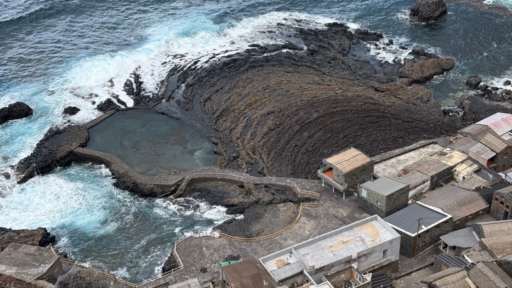 Seguendo i cartelli marroni che indicano i luoghi di interesse turistico, raggiungiamo Pozo de las Calcosas, un piccolo villaggio sulla costa settentrionale. Questo antico borgo estivo è composto da casette di pietra lavica, utilizzate dai pastori nei mesi caldi.