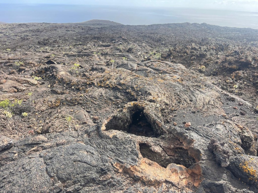 Il tramonto dipinge il cielo di rosso e arancio, mentre il suono delle onde riecheggia tra le pareti di roccia lavica. Il paesaggio è affascinante, quasi lunare, e decidiamo di concederci un giorno di pausa per godere appieno di questo scenario mozzafiato.