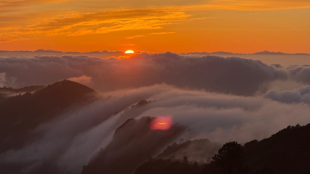 Abbiamo quindi deciso di non perdere l’occasione di trascorrere una serata unica sulla vetta dell’isola. Raggiunto il mirador, il panorama è purtroppo rimasto nascosto da fitte nuvole, e il vento non ha smesso di soffiare per tutta la notte. Con una temperatura di soli 7°C (a fronte dei 19°C della costa), abbiamo passato una notte movimentata, con il Truck scosso dalle raffiche. Ma il sacrificio è stato ripagato: all’alba il cielo si è aperto, regalandoci una vista mozzafiato sul Golfo di El Hierro.