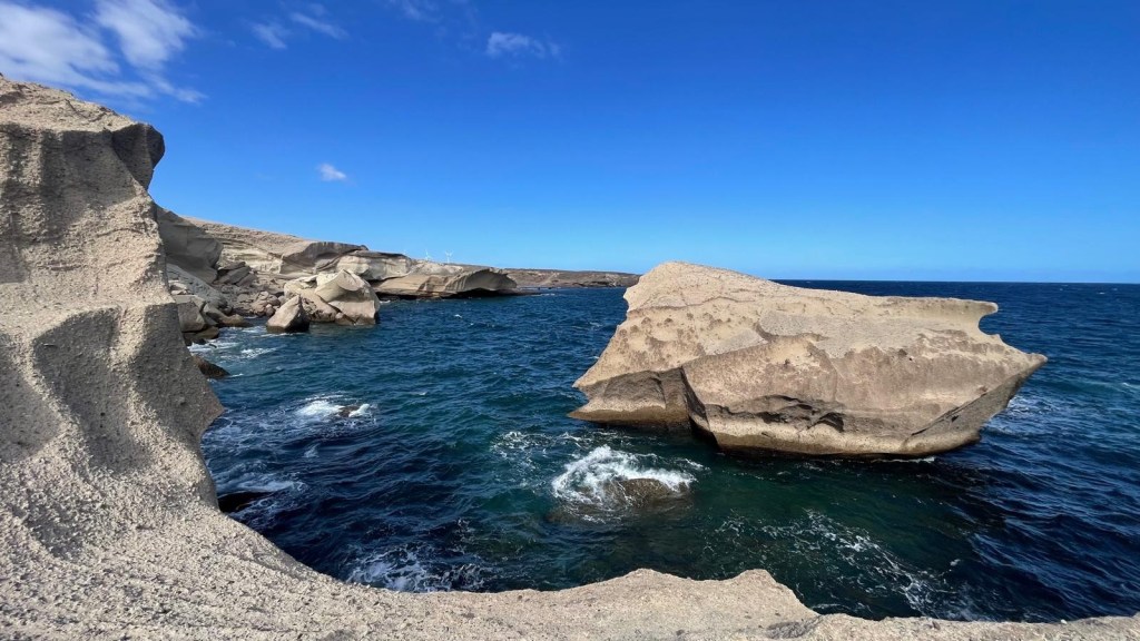 Proseguendo lungo la costa, ci siamo fermati a Playa de la Tejita, meno frequentata rispetto a Médano, e abbiamo concluso la mattinata esplorando Playa de Tajao, nota per le sue straordinarie formazioni rocciose scolpite dal vento.