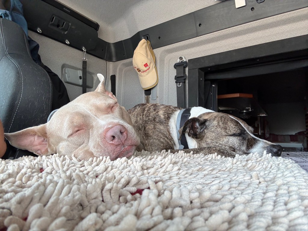 Yoda, come tutte le femmine che ci hanno accompagnato in viaggio, nel momento in cui mettiamo in moto il Truck, si addormenta; Odino no!, lui resta vigile, come faceva il suo predecessore Hogan.