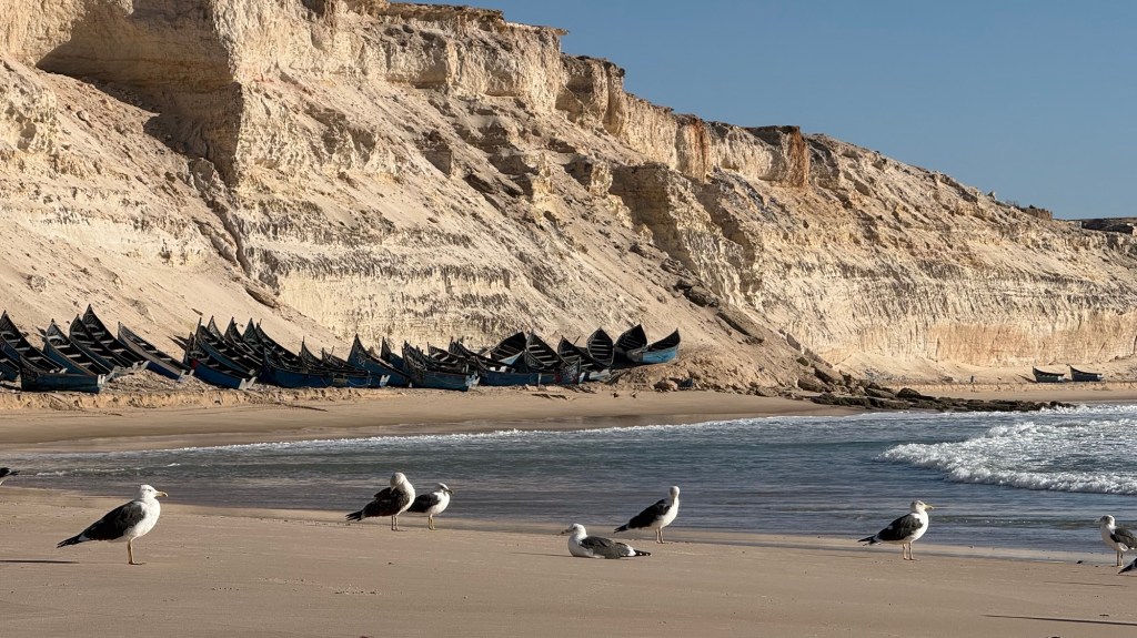 Una ventina di chilometri prima di arrivare al bivio per Dakhla raggiungiamo il villaggio di pescatori di Ntirft: una visita imperdibile.