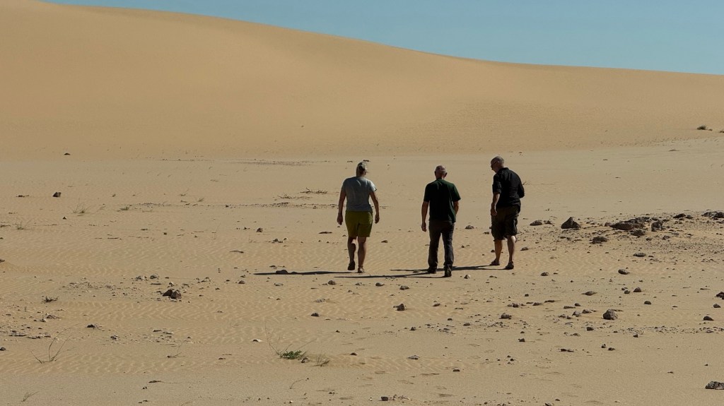 Dopo aver percorso alcuni chilometri su una pista sabbiosa, in mezzo ad una pianura desertica, seguendo le tracce di altri veicoli impresse nel suolo e cercando di evitare il “tole ondulee”, ci fermiamo in prossimità di alcune dune che abbiamo avvistato in lontananza.