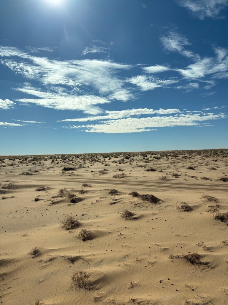 Note: percorso sabbioso a tratti più soffice. Non particolarmente impegnativo per un camion per raggiungere il monolito abbiamo attraversato i binari