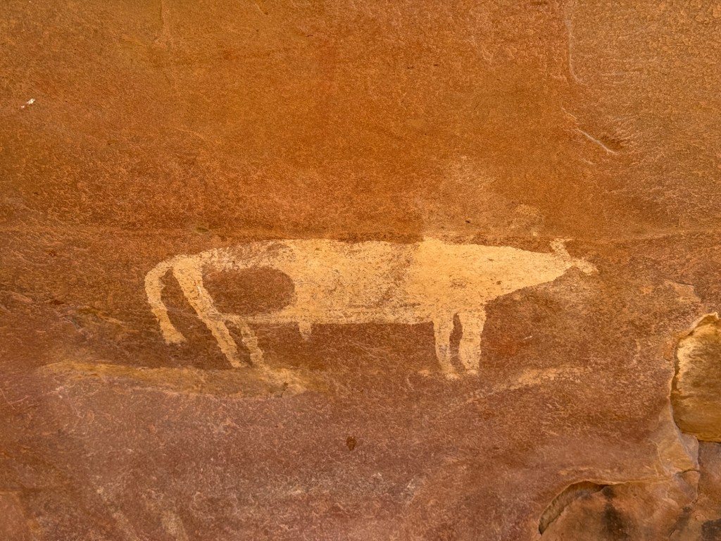 Lungo il percorso, incontriamo la deviazione per le pitture rupestri. Sono in diversi punti dell’area ma non sono assolutamente facili da trovare.