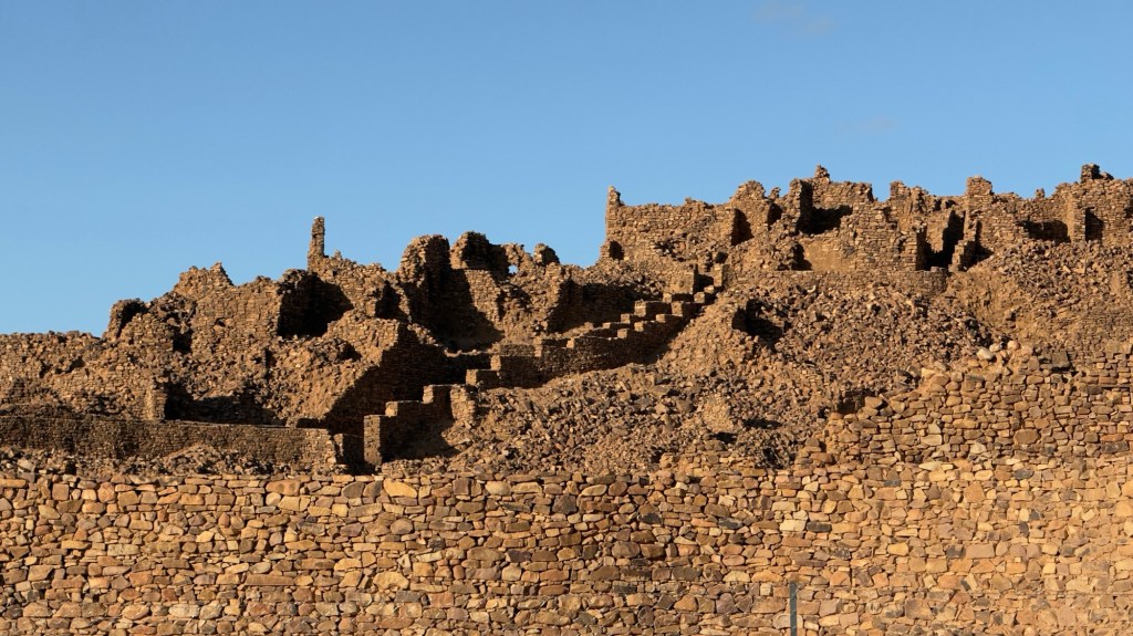 Sassi squadrati che cambiano colore con la luce del sole sembrano fusi alla pietra scura della collina. Le vestigia rimaste di quello che doveva essere un villaggio favoloso, ora sono solo detriti e macerie. Si può però intuire come poteva essere meraviglioso Ouadane ai tempi delle carovane.