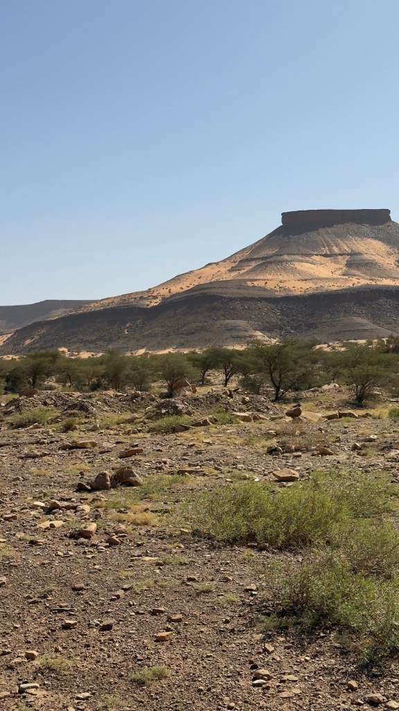 Più avanti, poco prima di raggiungere Akjoujt, le dune lasciano il posto a colline rocciose .