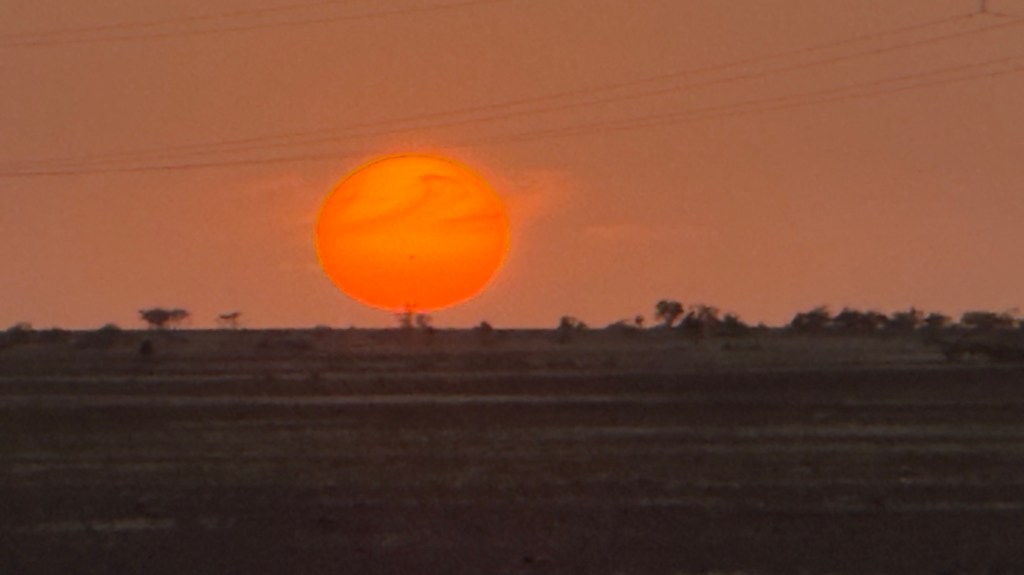 Inizialmente, sulla nostra sinistra, grandi dune di sabbia incorniciano il panorama mentre, sulla destra la vista si estende all’infinito, in una vasta pianura arida e desertica, interrotta da qualche villaggio.