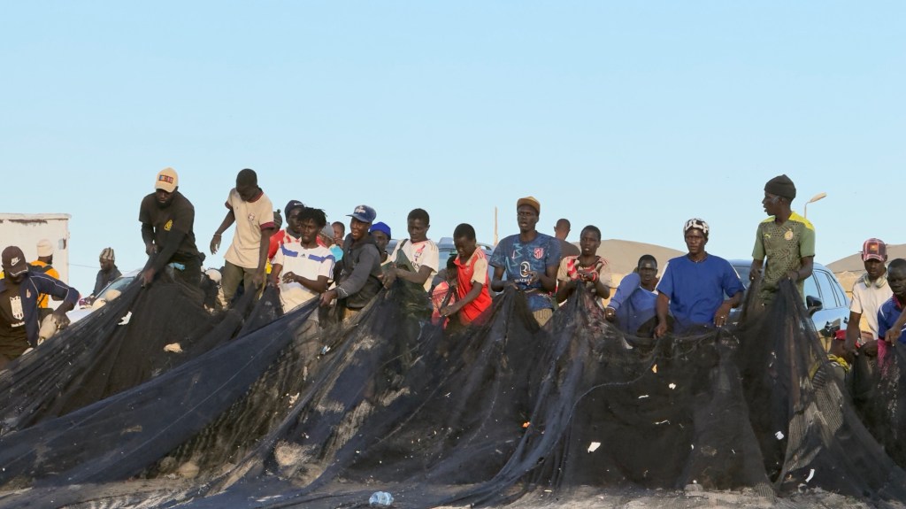 Altri ragazzi raccolgono le reti, cantando una litania che li aiuta a tenere il ritmo.