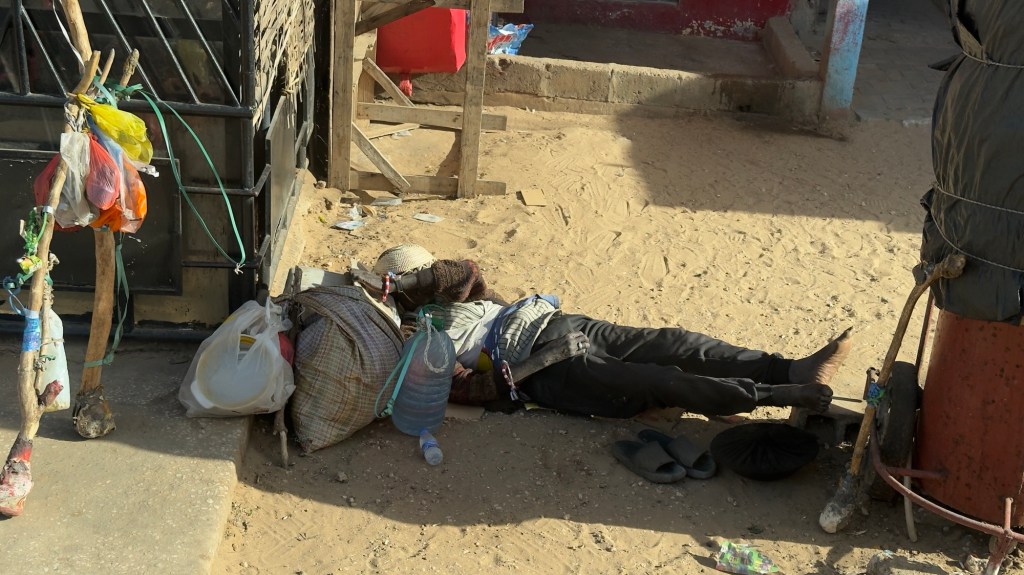 Tutte accucciate, una di fianco all’altra, le donne vendono esattamente le stesse cose.