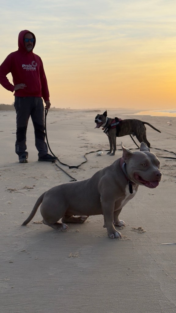 Prima del tramonto, portiamo Odino e Yoda a passeggiare in riva al mare.