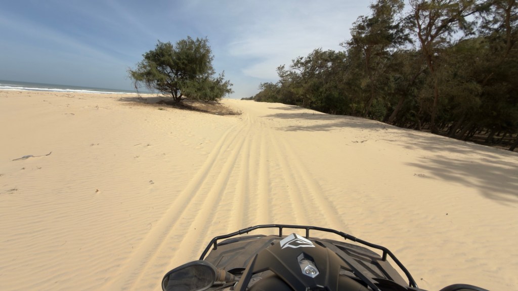La spiaggia sulla quale ci troviamo, parte da Dakar e, passando per il lago rosa, famosa ultima tappa della Parigi-Dakar quando si svolgeva in Africa, raggiunge la cittadina di St.Louis.