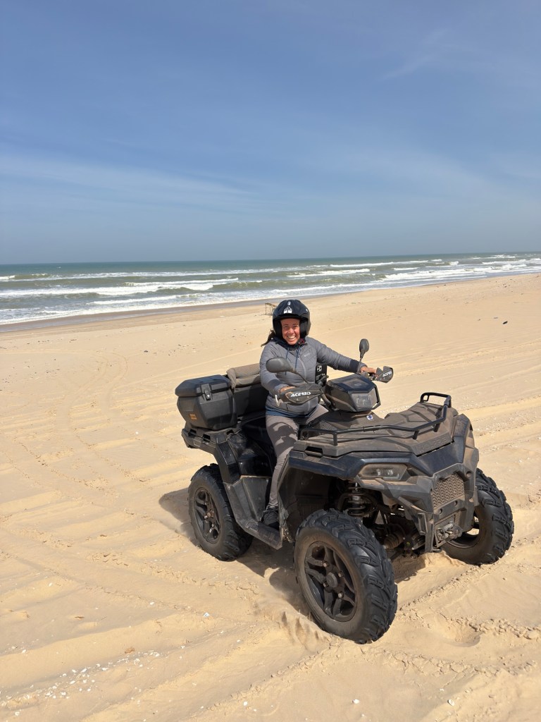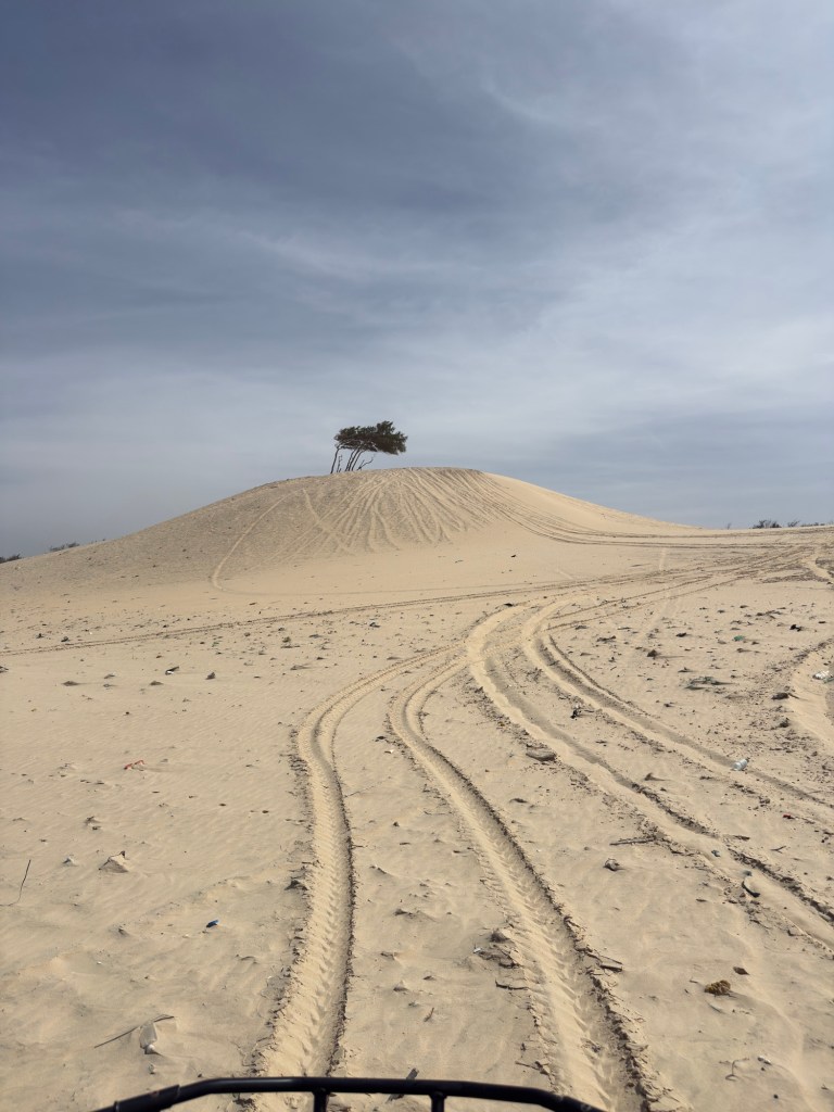 Non avendo potuto effettuare il tragitto, con il camion, perchè provenendo da nord verso sud, abbiamo scelto l’asfalto per portare la “carpetta del deserto” , vogliamo toglierci lo sfizio di farne un brevissimo tratto con il Quad.