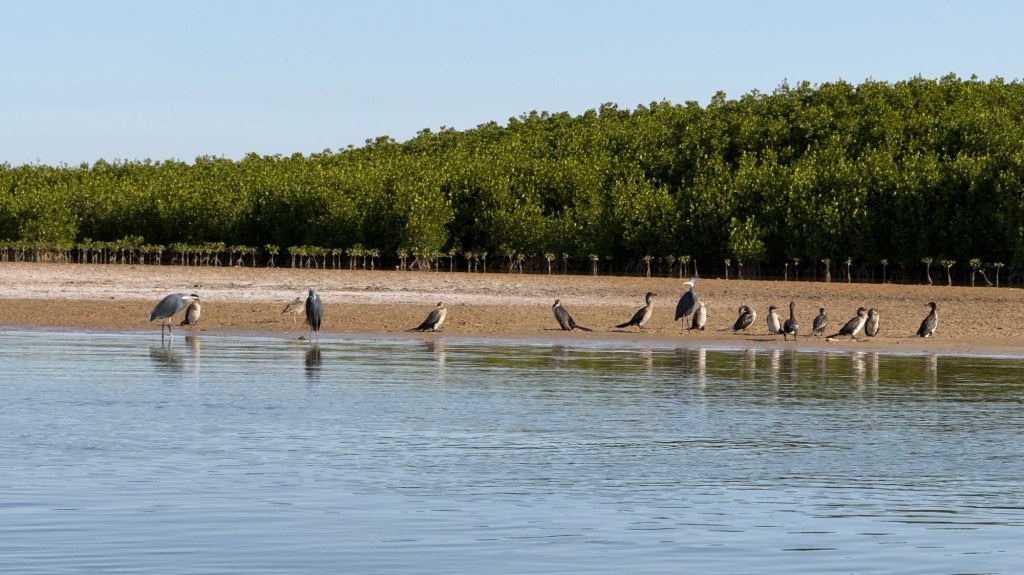 Belle spiagge; fenicotteri e pellicani che prendono il volo al nostro passaggio; meduse che galleggiano a pochi centimetri dal fondo nell’acqua della laguna; ville e resort a disposizione di chi vuole fuggire, per qualche giorno, dalla realtà e dal caos.
