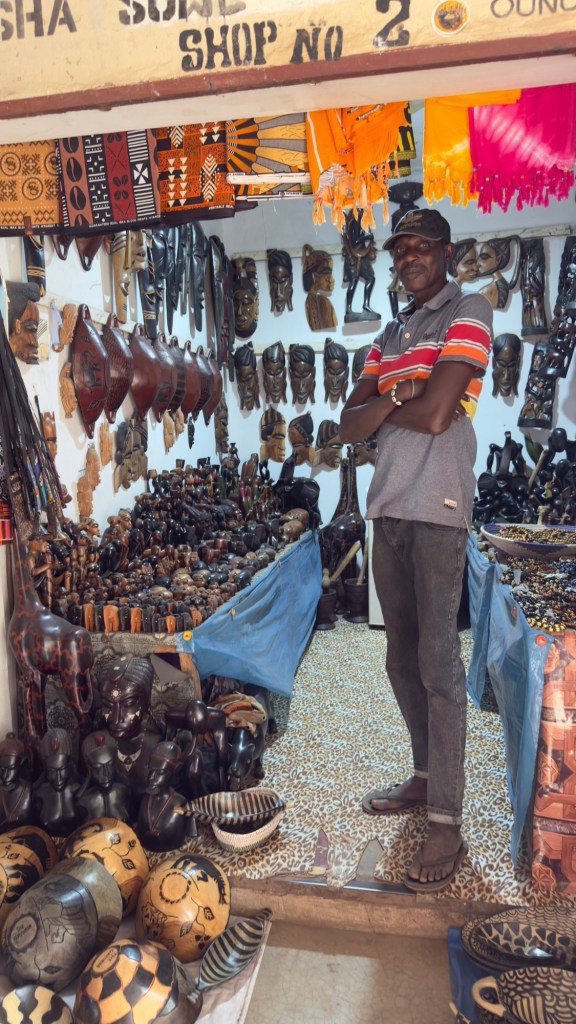 Maschere intagliate, sedie, soprammobili a forma di vari animali, portachiavi, braccialetti, vassoi e scodelle…tutto in legno, dipinto o intarsiato.