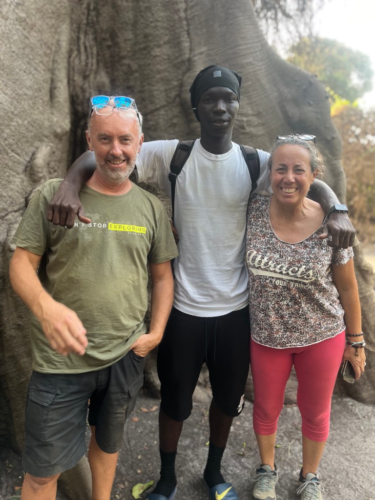 Proseguiamo la visita seguendo il sentiero in mezzo alla vegetazione, alla scoperta di alberi secolari. Ci scattiamo qualche foto insieme a tre ragazzi gambiani di una ventina d’anni, che scambiano con noi qualche parola.