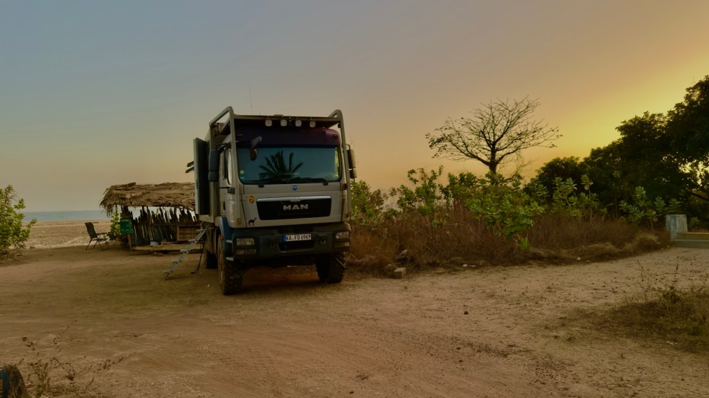 Tipo di sosta: sulla spiaggia di Kartong al confine sulla punta