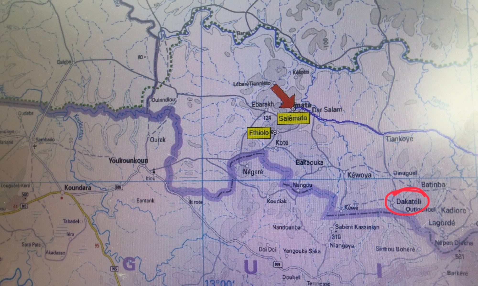 Ci interessa capire se ci sono strade percorribili per entrare e proseguire in Guinea, senza dover percorrere, in senso contrario, i 500 km che abbiamo fatto nei giorni scorsi.