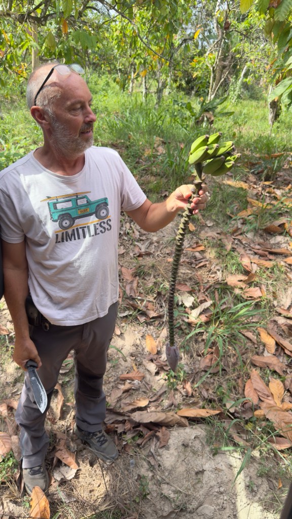 Percorso qualche chilometro, incrociamo il sentiero che va verso l’albergo di un ragazzo con cui abbiamo un contatto. Non è possibile arrivare alla sua struttura perché la vegetazione è troppo fitta e bassa, quindi continuiamo oltre, fino ad imboccare un altro sentiero che scende alla spiaggia.