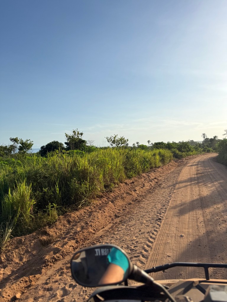 Con il Quad, imbocchiamo uno sterrato di terra rossa e, dopo una quindicina di chilometri raggiungiamo la spiaggia di Niega.
