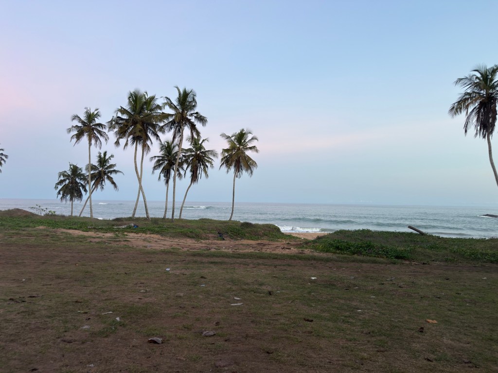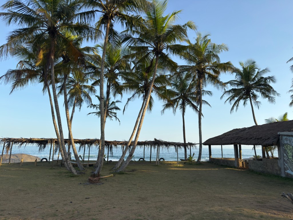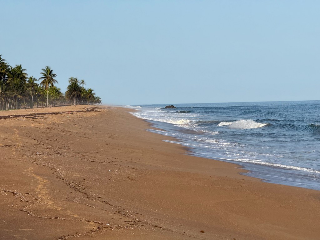 Rimaniamo subito affascinati dalla vista di questa spiaggia dorata, contornata da palme e dalle onde dell’oceano.