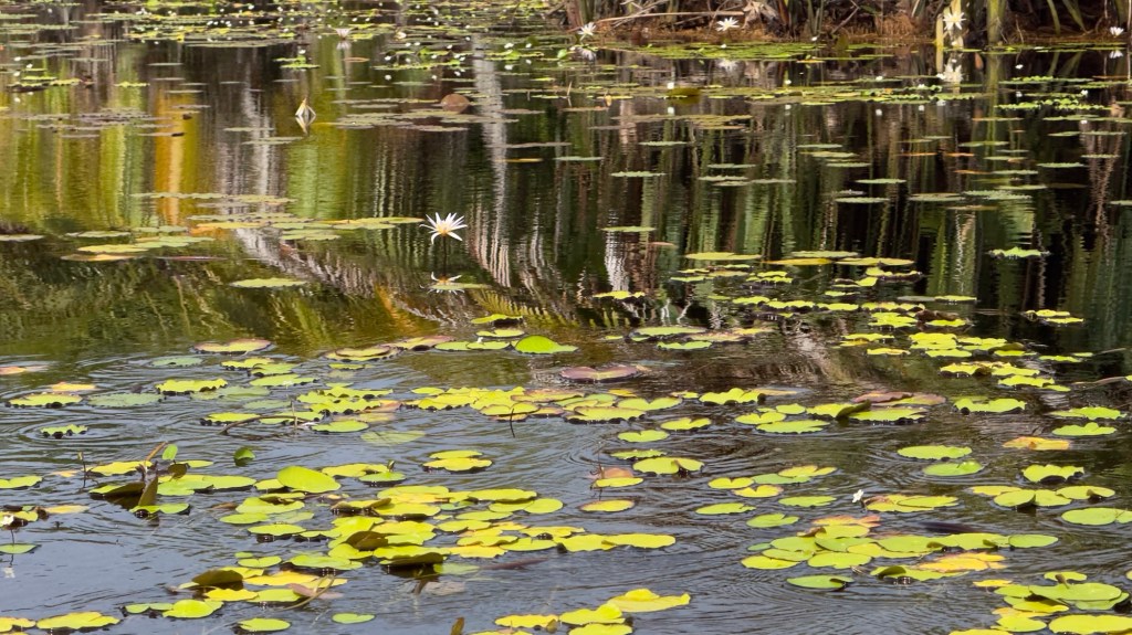 Nella stagione secca invece, l’acqua si ritira abbassando il fondo del torrente e lasciando emergere le piante galleggianti .