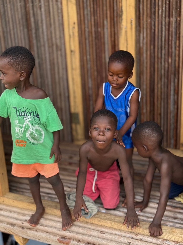 Saliti su una piroga a motore, che ha sostituito le vecchie imbarcazioni scavate nel legno e manovrate, a mano, con l’ausilio di un remo, in circa 15 minuti di navigazione, abbiamo raggiunto il villaggio.
