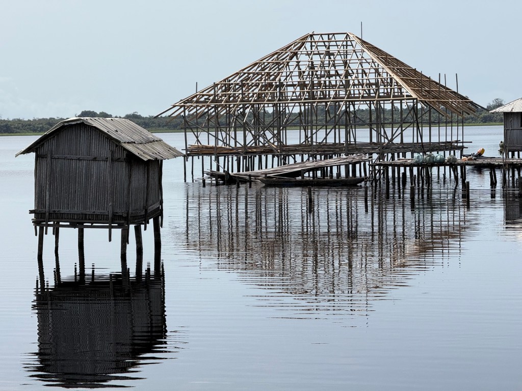 Una delle palafitte, ospita un bar ed un albergo, per i turisti che desiderano pernottare in loco.